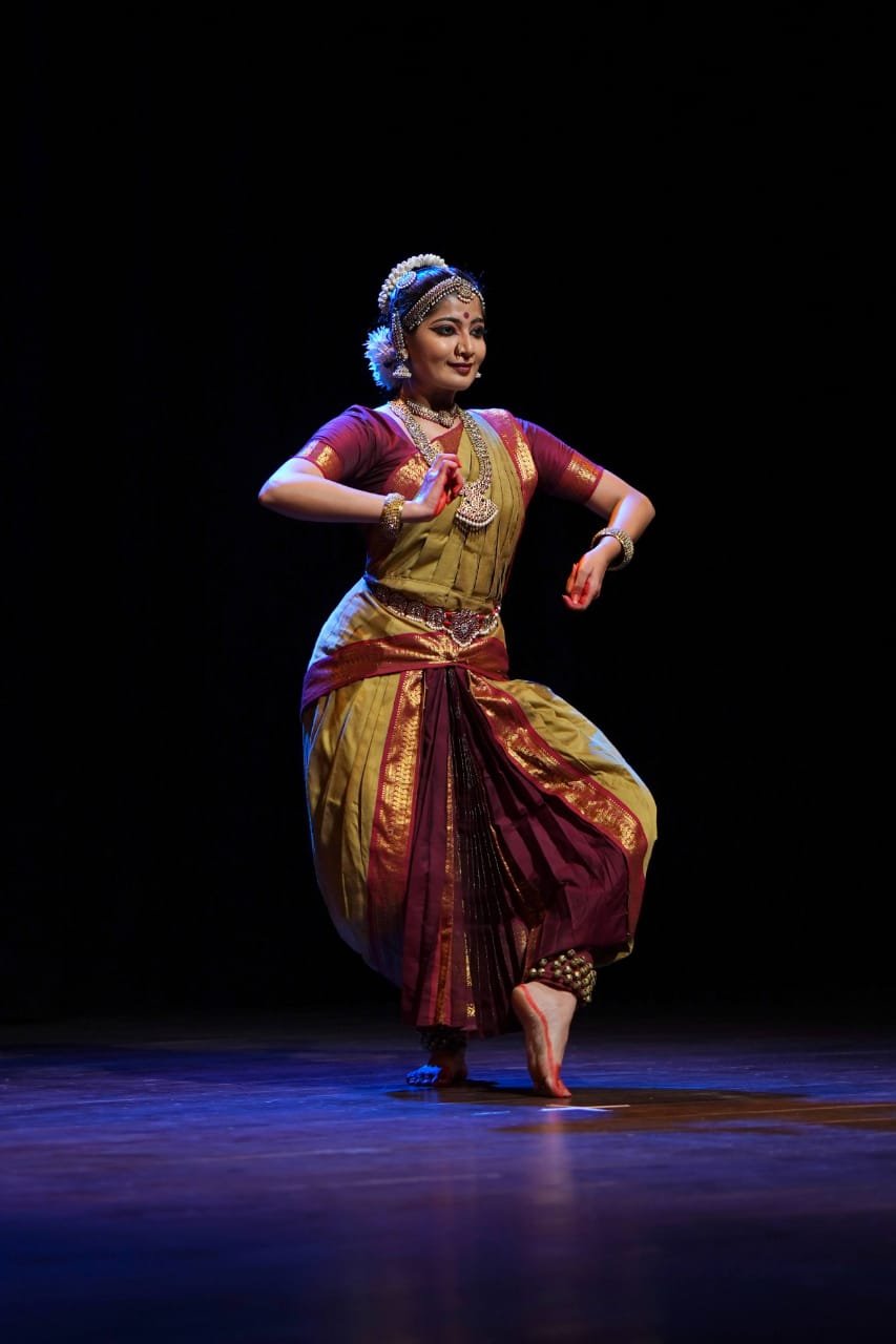 Vidushi Shreya Balaji began the event with the invocation of Lord Ganesha through her graceful moves. With her mesmerising performance, she literally took the audience to the spiritual realms of Shiva and Shri Krishna. Vidushi Surabhi Bharadwaj’s soulful and disciplined performance was top-notch followed by her devoted students performing amazingly. This indeed highlighted the relevance and continuity of Guru-Shishya (teacher-student) heritage of our culture in the present day as well. Following Vid. Surabhi Bharadwaj, it was Vidushi Pannaga who transported the audience to world of Shri Krishna and Bhagavatha. It is a challenge to present a story with beautiful moves, expressions and emotions simultaneously. Vidushi Pannaga has mastered it and her performance was fluid and effortless.