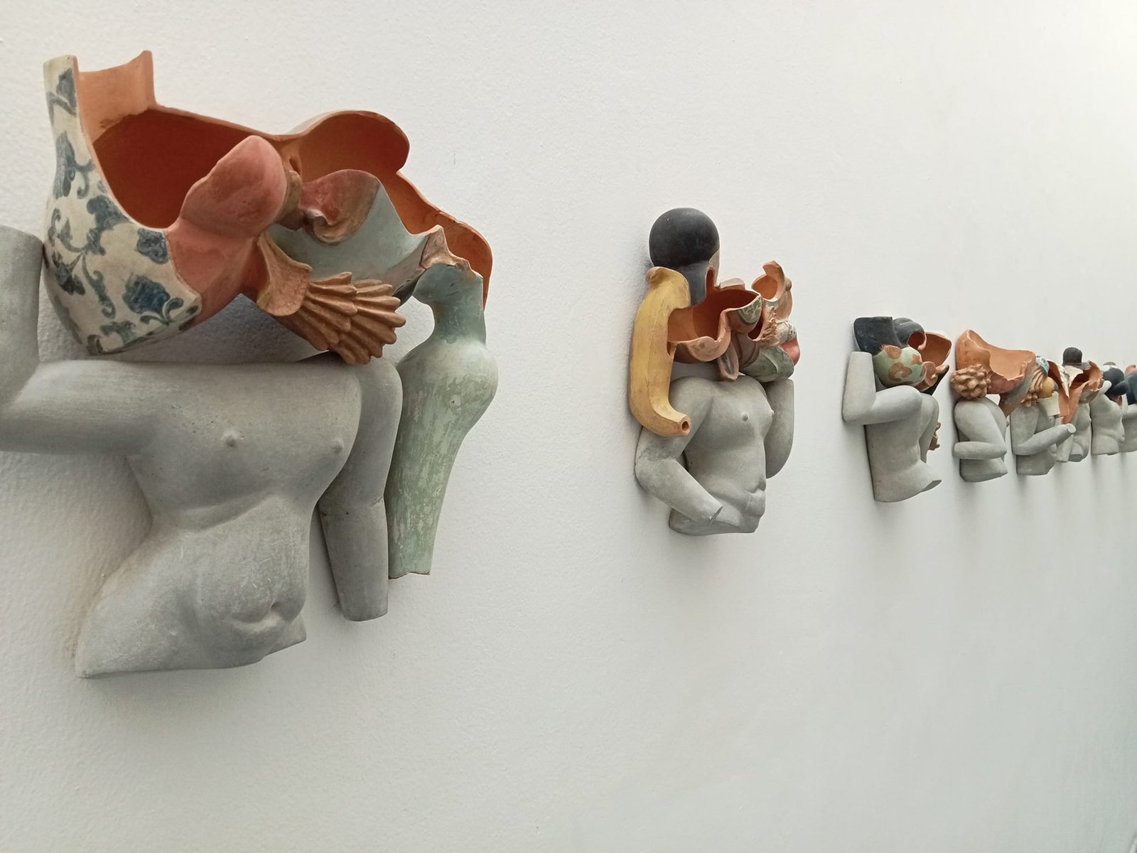Vikatonarva / Coloured Terracotta ಕಲಾಕೃತಿ ಇಡೀ ಕಲಾಪ್ರದರ್ಶನದ showstopper. ಬೃಹತ್ ಅಳತೆಯ ಈ ಶಿಲ್ಪ ಹಾಗೂ ಇದೇ ಪ್ರಕಾರದ ಇನ್ನಷ್ಟು ಶಿಲ್ಪಗಳು ಪ್ರದರ್ಶನವನ್ನು ಇನ್ನೊಂದು ಅಂತಸ್ತಿನೆತ್ತರಕ್ಕೆ ಕೊಂಡೊಯ್ಯುತ್ತವೆ. Bojh ಶೀರ್ಷಿಕೆಯ ಕಲಾಕೃತಿಯಲ್ಲಿ ಪ್ರತಿಷ್ಠಾಪಿಸಲಾದ ಎಂಟು ವಿಭಿನ್ನ ಅಳತೆಯ ಸಣ್ಣ ಗಾತ್ರದ ಶಿಲ್ಪಗಳು ಸೇರಿದಂತೆ ಎಲ್ಲವೂ ಬೇರೆ ಬೇರೆ ಆಯಾಮದಿಂದ ನೋಡಬಹುದಾದ ಕಲಾಕೃತಿಗಳು.