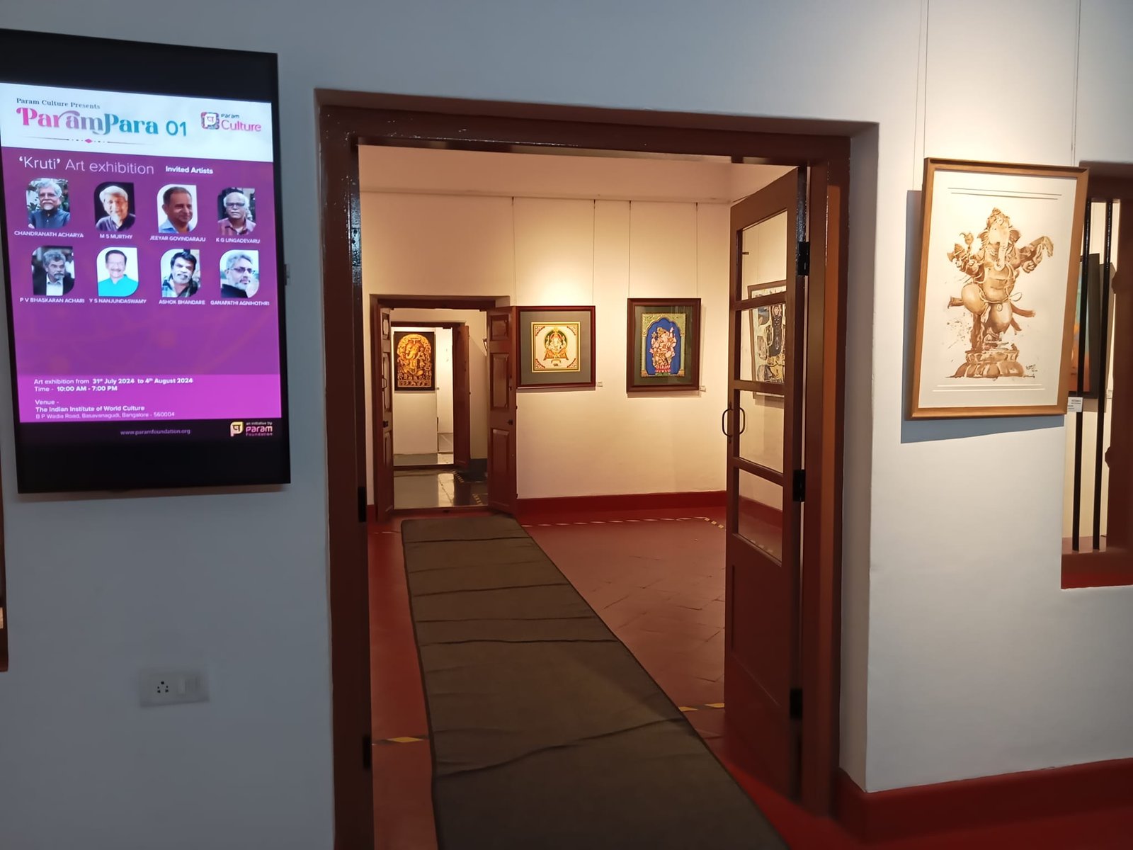ಪರಂ ಕಲ್ಚರ್ (Param Culture) ಆಯೋಜಿಸಿರುವ “ಪರಂಪರಾ” ಸರಣಿ ಸಂಸ್ಕೃತಿಯ ಮೊದಲ ಕಲಾ ಪ್ರದರ್ಶನ “ಕೃತಿ” ಶಿಸ್ತುಬದ್ಧವಾಗಿ ಆಯೋಜನೆಗೊಂಡಿದೆ. ಕಲಾವಿದರಾದ ಸಂಜಯ್ ಚಾಪೋಲ್ಕರ್ ಕ್ಯುರೇಟ್ ಮಾಡಿದ್ದು, ರಾಜ್ಯದ ಹಿರಿಯ ಕಲಾವಿದರಾದ ಚಂದ್ರನಾಥ ಆಚಾರ್ಯ, ಎಂ.ಎಸ್.ಮೂರ್ತಿ, ಜೀಯರ್ ಗೋವಿಂದರಾಜು, ಕೆ.ಜಿ.ಲಿಂಗದೇವರು, ಪಿ.ವಿ.ಭಾಸ್ಕರನ್ ಆಚಾರಿ, ವೈ.ಎಸ್.ನಂಜುಂಡಸ್ವಾಮಿ, ಅಶೋಕ್ ಭಂಡಾರೆ, ಎಂ.ಎನ್. ಮೂರ್ತಿ, ಅಶೋಕ್ ಬಿ.ಎಸ್. ಸೇರಿದಂತೆ 30 ಕಲಾವಿದರ ಕಲಾಕೃತಿಗಳು ಪ್ರದರ್ಶನದಲ್ಲಿವೆ. ಆಭರಣಾಲಂಕೃತ, ವರ್ಣಾಲಂಕೃತ, ರೇಖಾ ಲಾಲಿತ್ಯದಿಂದ ಕೂಡಿರುವ ಗಣೇಶನ ಕಲಾಕೃತಿಗಳನ್ನು ಈ ಪ್ರದರ್ಶನದಲ್ಲಿ ವೀಕ್ಷಿಸಬಹುದಾಗಿದೆ.