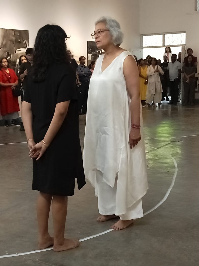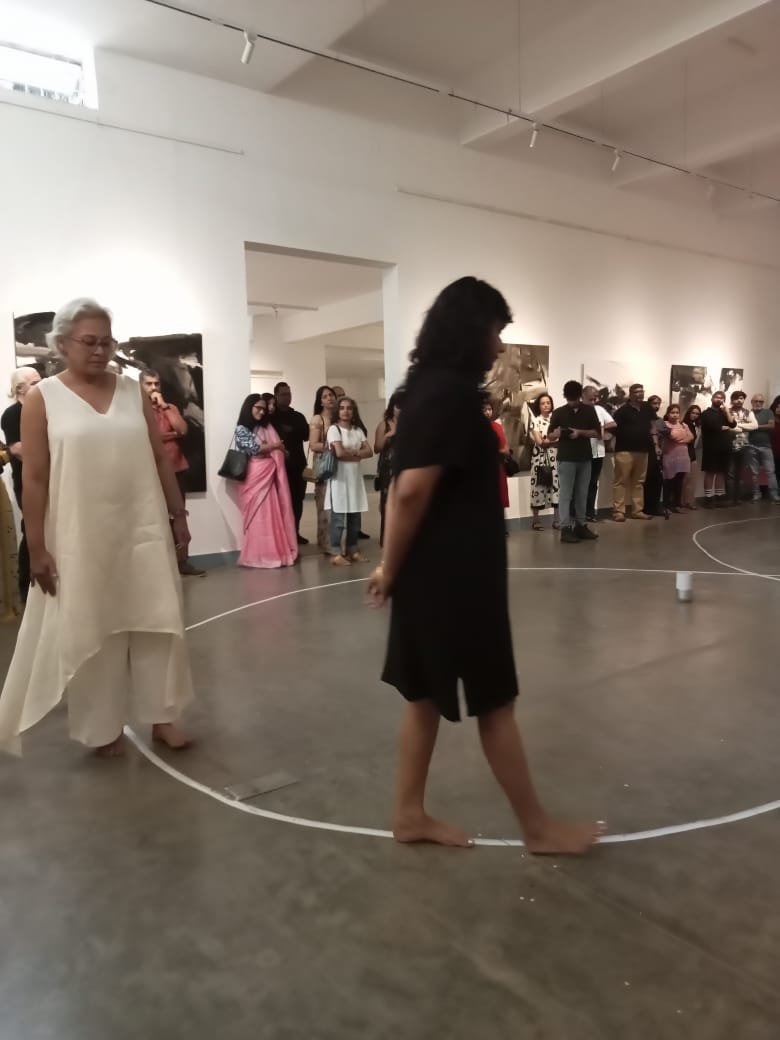 ಪ್ರಗತಿ ದಾಲ್ವಿ ಅವರು ಹಿರಿಯ ಕಲಾವಿದೆ ಜಯಶ್ರೀ ಪೊದಾರ್ ಅವರ ಜೊತೆಗೂಡಿ ನಡೆಸಿದ “i dont chase anymore” ಪ್ರದರ್ಶನ ಗಮನ ಸೆಳೆಯಿತು. ಈ ಇಬ್ಬರ ಪ್ರಯತ್ನ ಅನಂತ ನಡಿಗೆ(infinity walk)ಯ ಭಾಗವೇನೋ ಅನಿಸಿತು. ಪ್ರಯತ್ನ ಸ್ವಾಗತಾರ್ಹ, ಶ್ಲಾಘನೀಯ ಮತ್ತು ಅರ್ಥಪೂರ್ಣ. ಅನುಭವಿಸಿದಾಗಲೇ ಇದರ ಪ್ರಯೋಜನ ಅನುಭವಿಸಲು ಸಾಧ್ಯವಾಗೋದು. ಇನ್ಫಿನಿಟಿ ವಾಕ್ ಬಗ್ಗೆ ವಿವರಿಸಿದರೆ ಪುಟಗಟ್ಟಲೇ ಬರೆಯಬೇಕಾದೀತು. ಆದರೆ ಇದನ್ನೇ ನೇರವಾಗಿ ಹೇಳದೆ ಸಂದೇಶ ಕೊಡುವ “ಕಾಣದ ಧ್ವನಿಯ ಆಕಾರ” ಇದಾಗಿತ್ತು ಎನ್ನಬಹುದು.