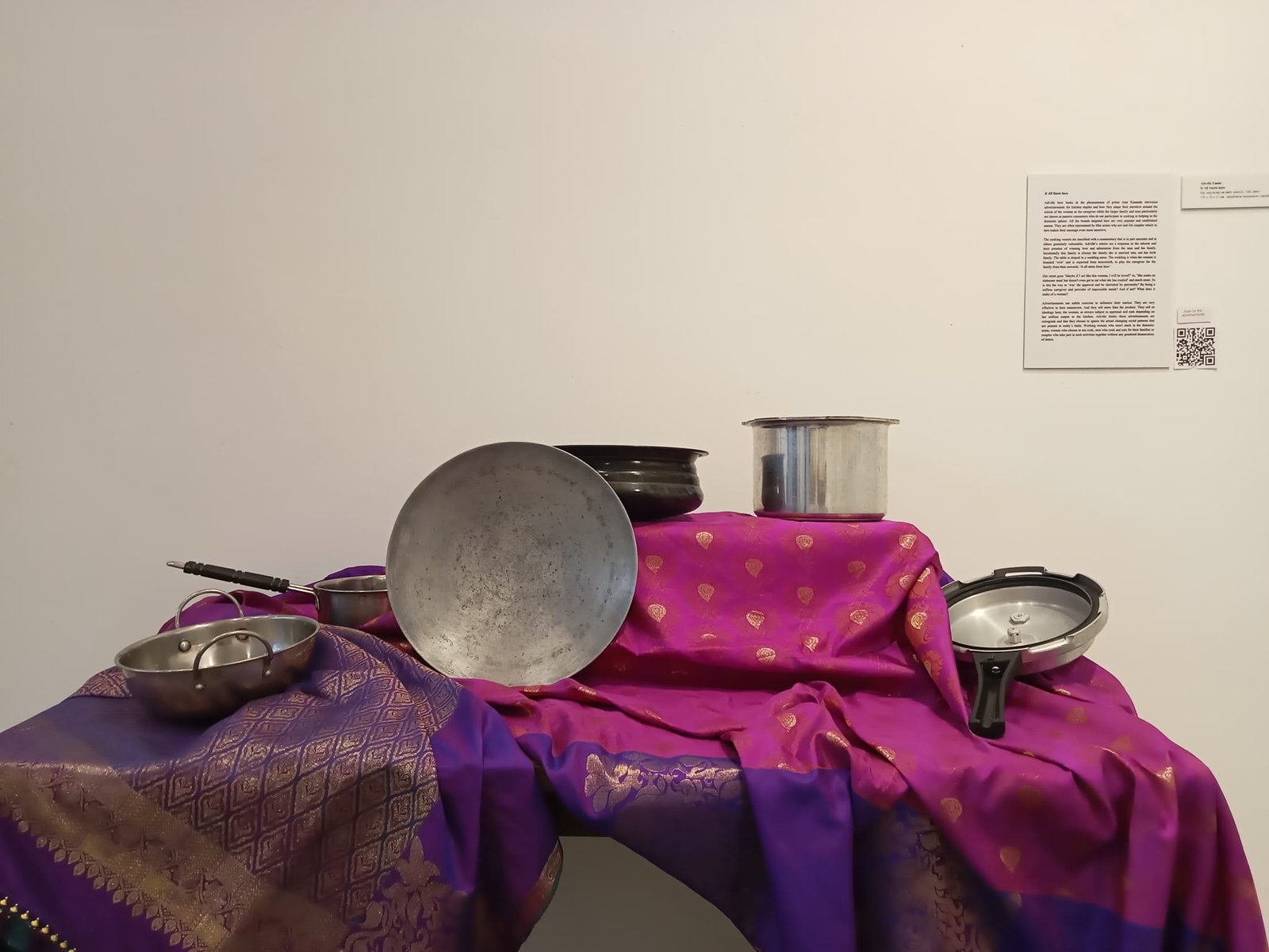 ಬೆಂಗಳೂರಿನ ಶಾಂತಿ ನಗರದಲ್ಲಿರುವ ೧ ಶಾಂತಿರೋಡ್ ಗ್ಯಾಲರಿಯಲ್ಲಿ ಕಳೆದ ನಾಲ್ಕು ದಿನಗಳಿಂದ ನಡೆಯುತ್ತಿರುವ ” Recipes and Cookbooks ” ಕಲಾಪ್ರದರ್ಶನ ಈ ಮೇಲೆ ಪ್ರಸ್ತಾಪಿಸಿರುವ ವಿಚಾರದ ಮೇಲೆ ಬೆಳಕು ಚೆಲ್ಲುವಂತಿತ್ತು. ಒಂದೊಳ್ಳೆಯ ಕಲಾಪ್ರದರ್ಶನ. ಪ್ರದರ್ಶನದ ಶೀರ್ಷಿಕೆ ಮತ್ತು ಪರಿಕಲ್ಪನೆ ವಿಭಿನ್ನವಾದುದು. ಇಂತಹ ಸರಳವೆನಿಸುವ ವಿಷಯವನ್ನು ಆಯ್ದು ದೃಶ್ಯ ಕಲಾಕೃತಿಯಾಗಿಸಿ ಪ್ರದರ್ಶಿಸಲು ಸಾಧ್ಯ ಎನ್ನುವುದಕ್ಕೆ ಒಂದೊಳ್ಳೆಯ ಉದಾಹರಣೆ.