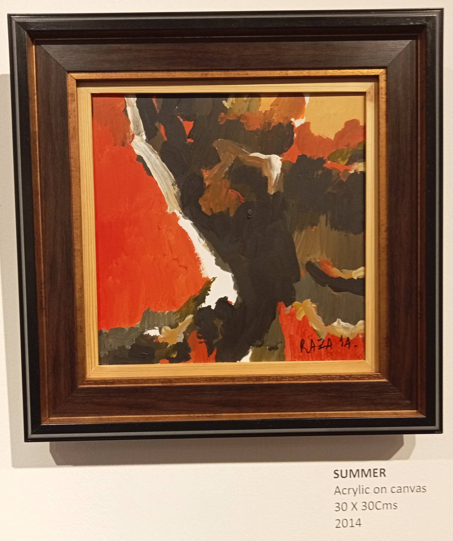 ಗಾಢವಾದ ವರ್ಣ ಬಳಕೆ ಮತ್ತು ತಂತ್ರಗಳನ್ನೇ ವಿಷಯ ವಸ್ತುವಾಗಿಸಿಕೊಂಡು ಛಾಪು ಮೂಡಿಸಿರುವ ಎಸ್.ಎಚ್.ರಜಾ ಅವರ ಕಲಾಕೃತಿಗಳಲ್ಲಿ ಕಾಣಲು ಸಾಧ್ಯವಾಗುವ ಅಮೂರ್ತವಾದ ನೋಡುಗರನ್ನು ಗೊತ್ತಿಲ್ಲದಂತೆ ಧ್ಯಾನಸ್ಥರನ್ನಾಗಿಸುವ ಶಕ್ತಿ ಹೊಂದಿವೆ. ವೈವಿಧ್ಯಮಯ ಬಣ್ಣಗಳ ಬಳಕೆಯಲ್ಲಿನ ಸಮತೋಲನ ಆಧ್ಯಾತ್ಮದ ಕಡೆ ಕೊಂಡೊಯ್ಯುತ್ತದೆ.