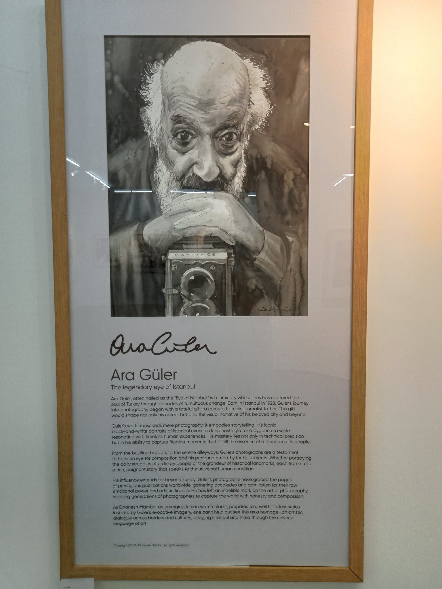 ಟರ್ಕಿಯ ಇತಿಹಾಸದ ಪುಟದಲ್ಲಿ ಅರಾ ಗುಲರ್ ವಿಶೇಷ ಸ್ಥಾನ ಪಡೆದವರು. ಇಸ್ತಾನ್ಬುಲ್ನ ಕಣ್ಣಿದ್ದಂತೆ ಎಂದು ಗುಲರ್ ಅವರನ್ನು ಗುಣಗಾನ ಮಾಡಲಾಗುತ್ತದೆ. ಔಷಧ ಅಂಗಡಿ ಮಾಲೀಕರೊಬ್ಬರ ಮಗನಾಗಿ ಜನಿಸಿ, ಬಾಲಕನಾಗಿದ್ದಾಗಲೆ ಸಿನಿಮಾ, ರಂಗಭೂಮಿ ಕ್ಷೇತ್ರಗಳ ಪರಿಚಯ ಮಾಡಿಕೊಂಡು ಬೆಳೆದ ಅರಾ ಗುಲರ್ ಬಳಿಕ ಪತ್ರಿಕೋದ್ಯಮದಿಂದ ಆಕರ್ಷಿತರಾಗುತ್ತಾರೆ. ತಮ್ಮ ಛಾಯಾಚಿತ್ರಗಳ ಮೂಲಕವೇ ವಿಶ್ವ ವಿಖ್ಯಾತರಾಗಿದ್ದಾರೆ. ಇಂತಹ ಖ್ಯಾತನಾಮ ಛಾಯಾಗ್ರಾಹಕರನ್ನು ಭೇಟಿ ಮಾಡಿದ, ಅವರ ಛಾಯಾಚಿತ್ರಗಳಿಂದ ಪ್ರೇರಣೆ ಪಡೆದುಕೊಂಡಿರುವ ಧನೇಶ್ ಮಾಂಬಾ ಅವರ ಈ ಪ್ರಯತ್ನ ಶ್ಲಾಘನೀಯ. ಬಹಳ ಅಚ್ಚುಕಟ್ಟಾದ ಜಲವರ್ಣ ಬಳಕೆ ಕೇರಳದ ಕಲಾ ಸಂಸ್ಕೃತಿ, ಸಂಸ್ಕಾರವನ್ನೂ ತೆರೆದಿಡುತ್ತಿದೆ.
