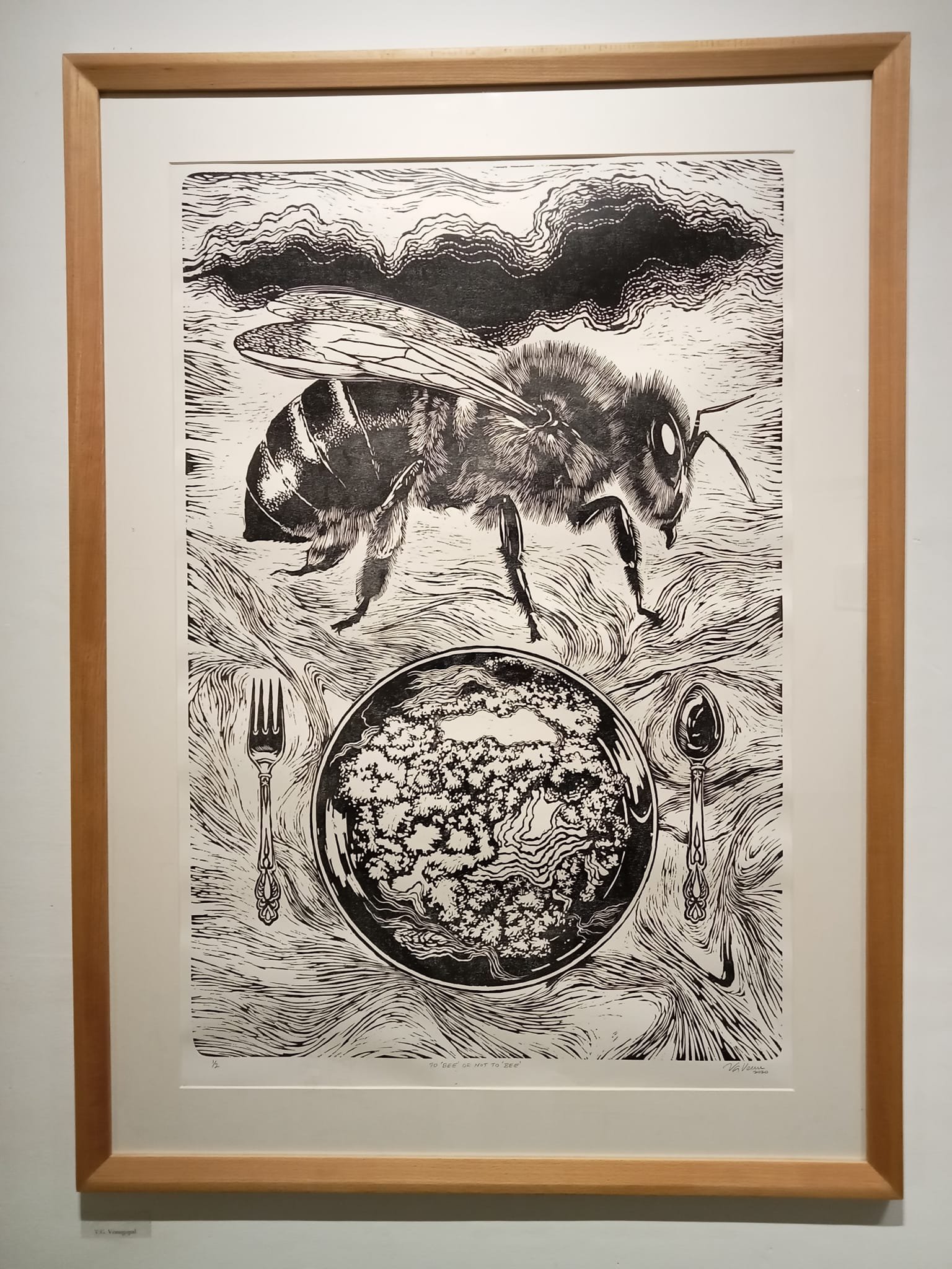 ವೇಣುಗೋಪಾಲ ವಿ.ಜಿ. ಅವರ ‘ Until Then ‘ ಸರಣಿ ಕಲಾಕೃತಿಗಳು ಕೋವಿಡ್ ಸಮಯವನ್ನು ನೆನಪಿಸುತ್ತವೆ. ಸಂದಿಗ್ಧ ಸಮಯದಲ್ಲಿ ಜೀವವೊಂದು ಪರಿಸರ ಆಗು ಹೋಗುಗಳಿಗೆ ಸ್ಪಂದಿಸುವ, ಸ್ವಾಭಾವಿಕ ಬದಲಾವಣೆಯ ಸಂಗತಿಗಳನ್ನೇ ವಸ್ತು ವಿಷಯ ಮಾಡಿಕೊಂಡಿದ್ದಾರೆ. ಜೇನು ಜೀವನ ಕಟ್ಟಿಕೊಳ್ಳುವ ವಿಸ್ಮಯವೇ ವೇಣುಗೋಪಾಲ್ ಅವರ ಕಲಾಕೃತಿಗಳ ಜೀವಾಳವಾಗಿದೆ. ಅಮೃತಾ ನಂಬಿಯಾರ್ ಅವರ