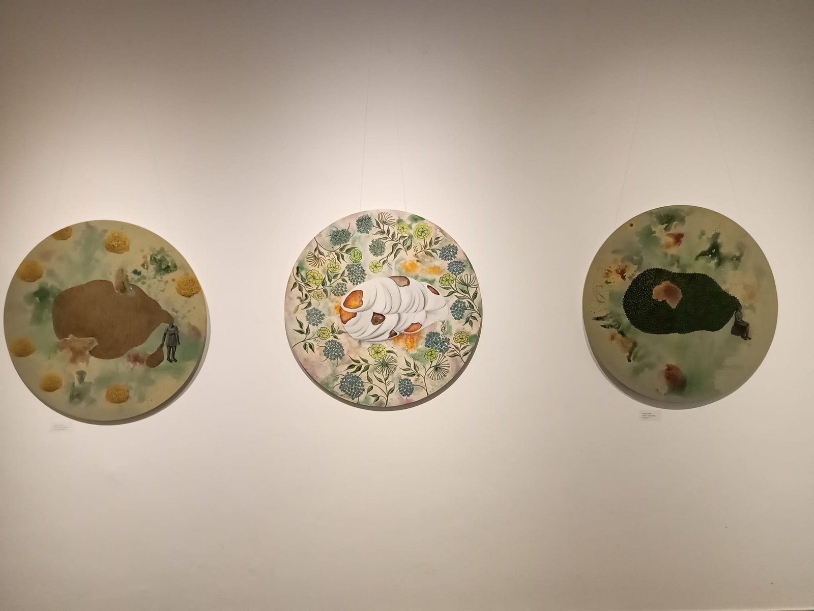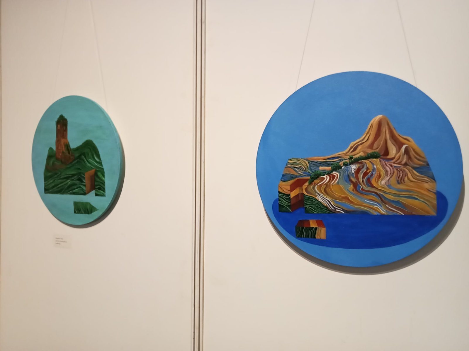 ಡಿಂಪಲ್ ಶಾ ಅವರ ‘ The Quixotic Landscape ‘ ಶೀರ್ಷಿಕೆಯ ಕಲಾಕೃತಿ ಪರಿಸರದ ಮೇಲಿನ ಅಪಾಯಕಾರಿ ಪರಿಣಾಮಗಳನ್ನು ಬಹಳ ಸರಳವಾಗಿ ಅಮೂರ್ತತೆಯ ನೆಲೆಯಲ್ಲಿ ಹೇಳುವ ಪ್ರಯತ್ನ ಮಾಡಿದ್ದಾರೆ ಅನಿಸಿತು. ವೃತ್ತಾಕಾರದ ಕ್ಯಾನ್ವಾಸನ್ನು ಇಡೀ ಭೂಮಂಡಲವನ್ನೇ ಪ್ರತಿನಿಧಿಸುತ್ತಿರುವ ಹಾಗೆ ದುಡಿಸಿಕೊಂಡಿದ್ದಾರೆ.