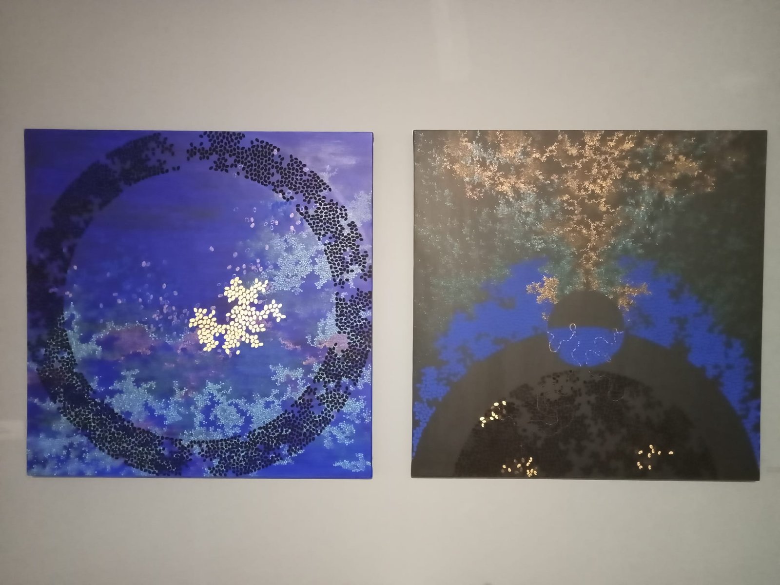 ಮರಿಸ್ಸಾ ಡಿ ಮಿರಂಡಾ ಅವರ ‘ Death of a Planet – Future Unknown ‘ ಕಲಾಕೃತಿ ಮೈವಳಿಕೆ ಮತ್ತು ವಸ್ತುವನ್ನೇ ಮಾಧ್ಯಮವಾಗಿ ದುಡಿಸಿಕೊಂಡಿರುವ ಪ್ರಕ್ರಿಯೆ ಗಮನ ಸೆಳೆಯುತ್ತವೆ. ಹತ್ತಾರು ಪ್ರಶ್ನೆಗಳನ್ನು ಹುಟ್ಟುಹಾಕುವ ಕಲಾಕೃತಿಗಳು ಉತ್ತರವನ್ನೂ ಪರೋಕ್ಷವಾಗಿ ನೀಡುತ್ತವೆ. ಇನ್ನು ಕೋಯಲ್ ರಹೇಜಾ ಅವರ ‘ You and Me ‘ ಸರಣಿ ಕಲಾಕೃತಿಗಳಲ್ಲಿ ಅಮೂರ್ತವೆನಿಸುವ ಮೂರ್ತವಾದವಿದೆ. ಗ್ರಾಫ್ ಶೀಟ್ (graph sheets) ಗಳನ್ನು ಆಸಕ್ತಿ ಮೂಡಿಸುವ ರೀತಿಯಲ್ಲಿ ದುಡಿಸಿಕೊಂಡಿದ್ದಾರೆ. ಮಕ್ಕಳು ಮನೆಯಲ್ಲಷ್ಟೇ ಮಕ್ಕಳಲ್ಲ. ನೋಡುಗರನ್ನೂ ಮುಗ್ಧ ಮಕ್ಕಳ ಜೊತೆ ಮಕ್ಕಳನ್ನಾಗಿಸುವ ಜಾಣತನ ತೋರಿದ್ದಾರೆ. ಕ್ಷಣಕಾಲ ಕಲಾಕೃತಿಗಳ ಮುಂದೆ ನಿಂತು ಹುಡುಕಾಟ ನಡೆಸುವ ಪ್ರಕ್ರಿಯೆ ಗಮನಸೆಳೆಯುತ್ತವೆ. ಒಂದೊಳ್ಳೆಯ ಪ್ರಯತ್ನ.