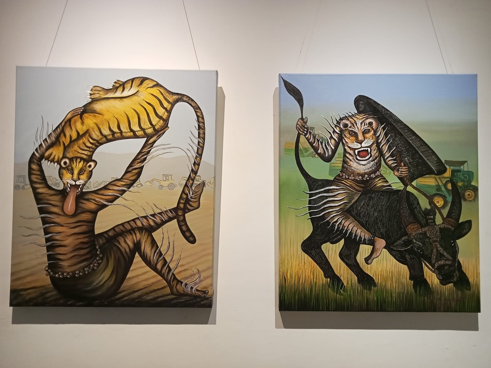 ಶಿವಪ್ರಸಾದ್ ಕೆ.ಟಿ. ಅವರು ಹುಲಿ ಕಥೆ ಹೇಳಿದ್ದಾರೆ. ಅವರ ‘ Pili Pathera- Tiger story ‘ ಶೀರ್ಷಿಕೆಯ ಕಲಾಕೃತಿಗಳ ಮೂಲಕ ತುಳುನಾಡಿನ ಮಣ್ಣಿನ ಗರ್ಜನೆ ವೀರರಸವಾಗಿಸಿ ನೋಡುಗರ ಮುಂದಿಟ್ಟಿದ್ದಾರೆ. ನಂಬಿಕೆ ಎಂದಿಗೂ ಪ್ರಭಾವಶಾಲಿ ಎನ್ನುವ ಸಂದೇಶವಿದೆ. ಪರಿಸರ, ಪ್ರಕೃತಿ ಬಗೆಗಿನ ಕಾಳಜಿ ಜೀವಂತವಾಗಿಸಿದ್ದಾರೆ.