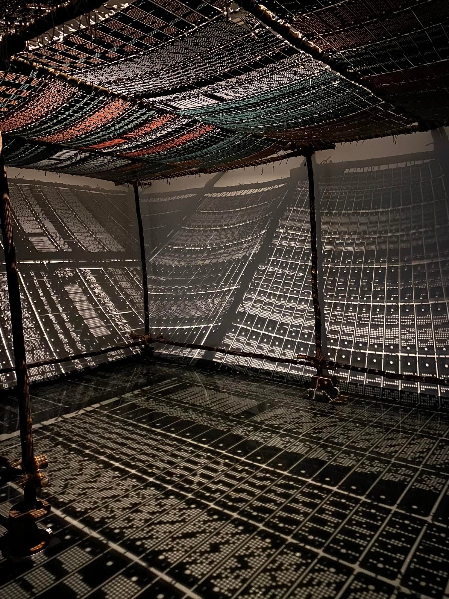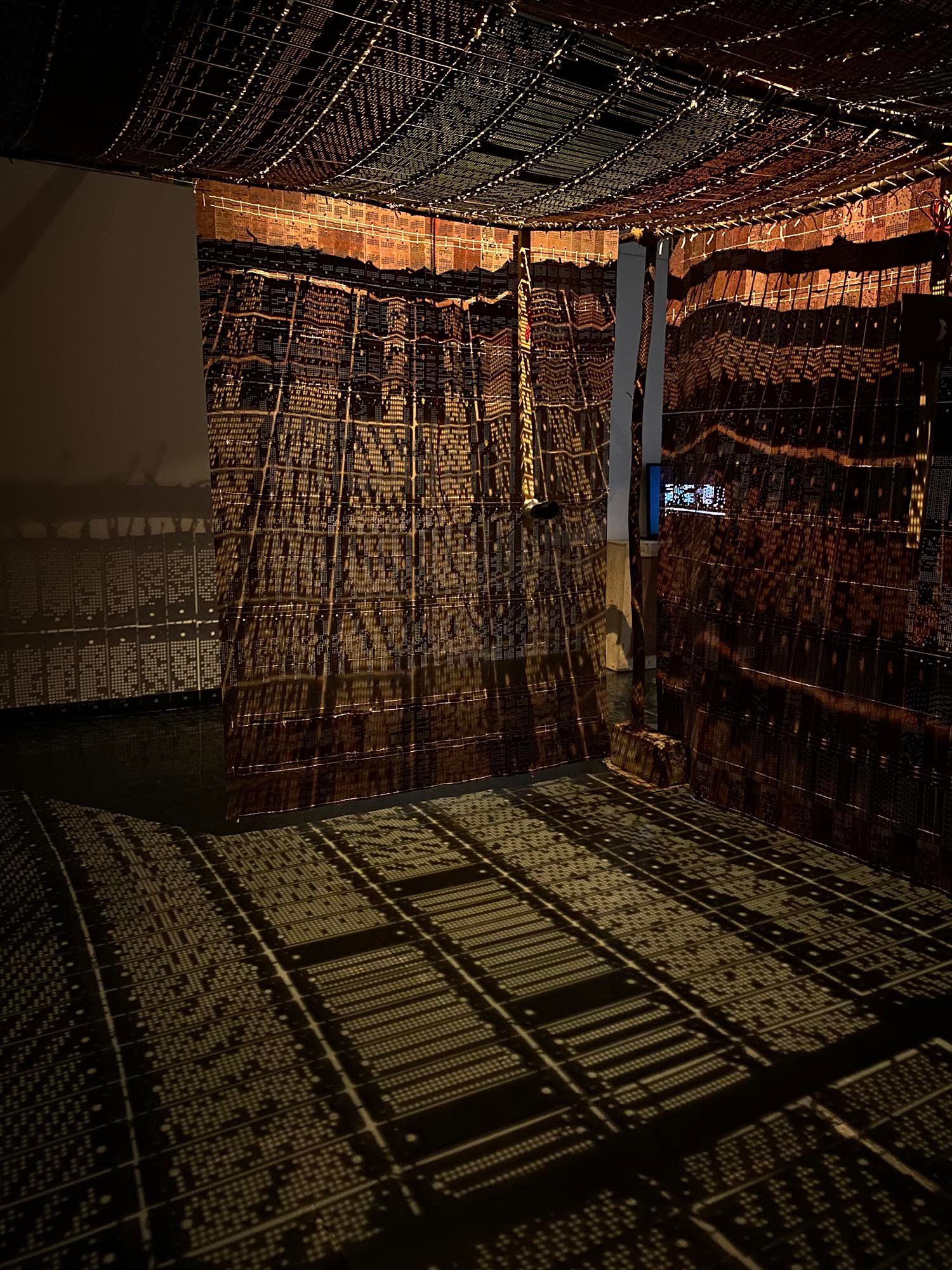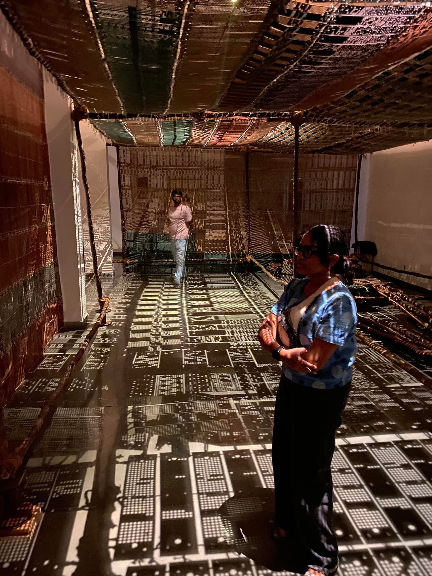 ಅನುಭವ ಇರುವ ನೋಡುಗನಿಗೆ ಈ ಕಲಾಕೃತಿ ತಕ್ಷಣಕ್ಕೆ ಮಲೆನಾಡಿನ ಚಪ್ಪರದ ನೆನಪು ಮಾಡಿದರೂ ಅಚ್ಚರಿ ಇಲ್ಲ. ಅದಕ್ಕೆ ಅತ್ಯಂತ ಹೆಚ್ಚಿನ ಸಾಮ್ಯತೆ ಇರುವಂತೆ ಹ್ಯಾಂಡ್ಲೂಮ್ ಕಾರ್ಡ್ಗಳನ್ನು ಬಳಸಿಕೊಂಡಿದ್ದಾರೆ. ಪ್ರತಿಯೊಂದು ಕಾರ್ಡ್ಗಳನ್ನು ಜೋಡಿಸಲು ನೇಯ್ಗೆಯ ವಿಧಾನವನ್ನೇ ಅನುಸೆರಿಸಿದ್ದಾರೆ. ಈ ಕಾರಣಕ್ಕಾಗಿ ಈ ಕಲಾಕೃತಿ ನೇಕಾರರಿಗೆ ಇನ್ನಷ್ಟು ಆಪ್ತ ಎನಿಸುವಂತಿದೆ. ವಿಭಿನ್ನವಾದ ವಿನ್ಯಾಸದಿಂದ ಕೂಡಿರುವ ಕಾರ್ಡ್ಗಳ ಮೇಲಿನ ರಂಧ್ರಗಳ ಮೂಲಕ ಬೆಳಕು ಹಾದು ಹೋಗುವಾದ ರೂಪತಾಳುವ ನೆರಳು ಎದುರಿನ ಗೋಡೆಯನ್ನು, ನೆಲವನ್ನು ರಂಗೋಲಿ ಮೂಲಕ ಅಲಂಕರಿಸಿದ ಭಾವ ಮೂಡುತ್ತದೆ. ಒಟ್ಟಾರೆ ನೆರಳು-ಬೆಳಕಿನ ಆಟವೇ ಒಂದು ಕಲಾಕೃತಿಯಾಗಿ ನೋಡುಗರ ಎದುರು ನಿಲ್ಲುತ್ತದೆ. ಅರ್ಚನಾ ಹಂದೆ ಅವರು ತಮ್ಮ ಈ ಕಲಾಕೃತಿ ಮೂಲಕ ಹೊಸ ಆಯಾಮದಲ್ಲಿ ನೋಡಲು ನೋಡುಗರನ್ನು ಚಿಂತನೆಗೆ ಹಚ್ಚುತ್ತಾರೆ.
